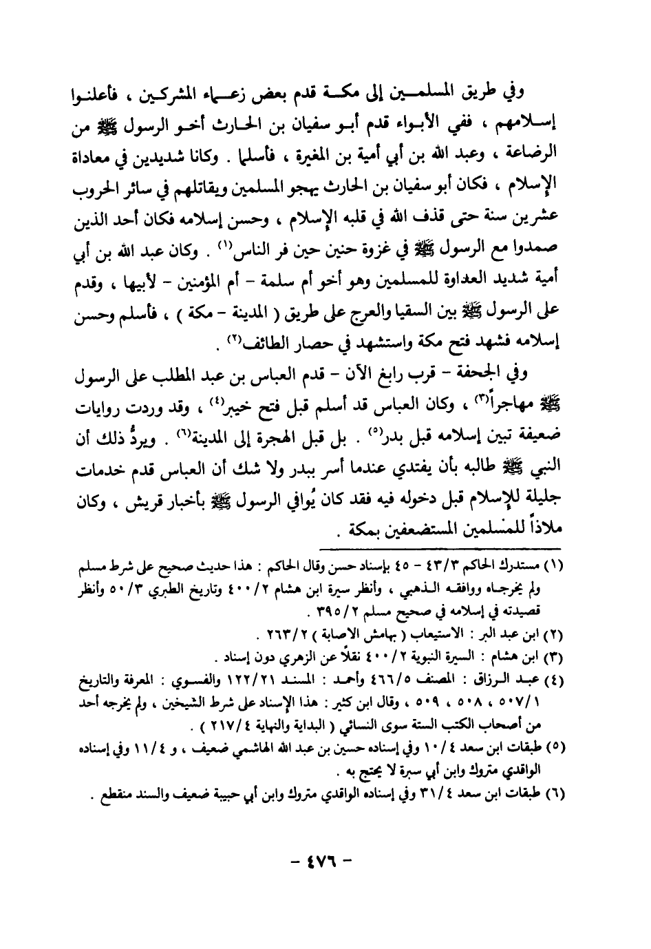 (¬1) مستدرك الحاكم 3/ 43 - 45 بإسناد حسن وقال الحاكم: هذا حديث صحيح على شرط مسلم ولم يخرجاه ووافقه الذهبي، وانظر سيرة ابن هشام 2/ 400 وتاريخ الطبري 3/ 50 وأنظر قصيدته في إسلامه في صحيح مسلم 2/ 395.