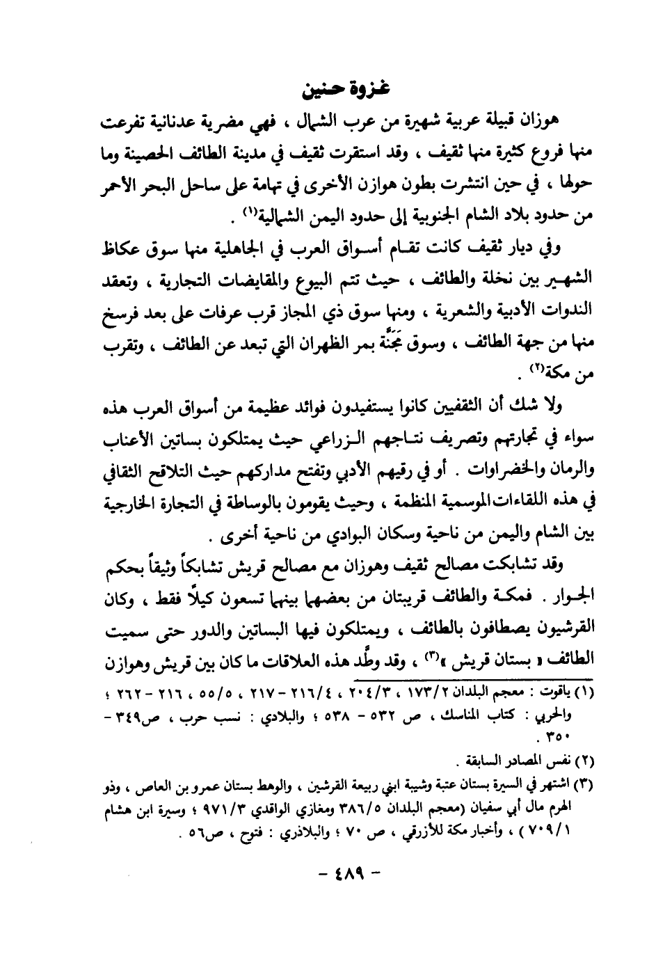 (¬1) ياقوت: معجم البلدان 2/ 173، 3/ 204، 4/ 216 - 217، 5/ 55، 216 - 262، والحربي: كتاب المناسك ص 532 - 538، والبلادي: نسب حرب ص 349 - 350.