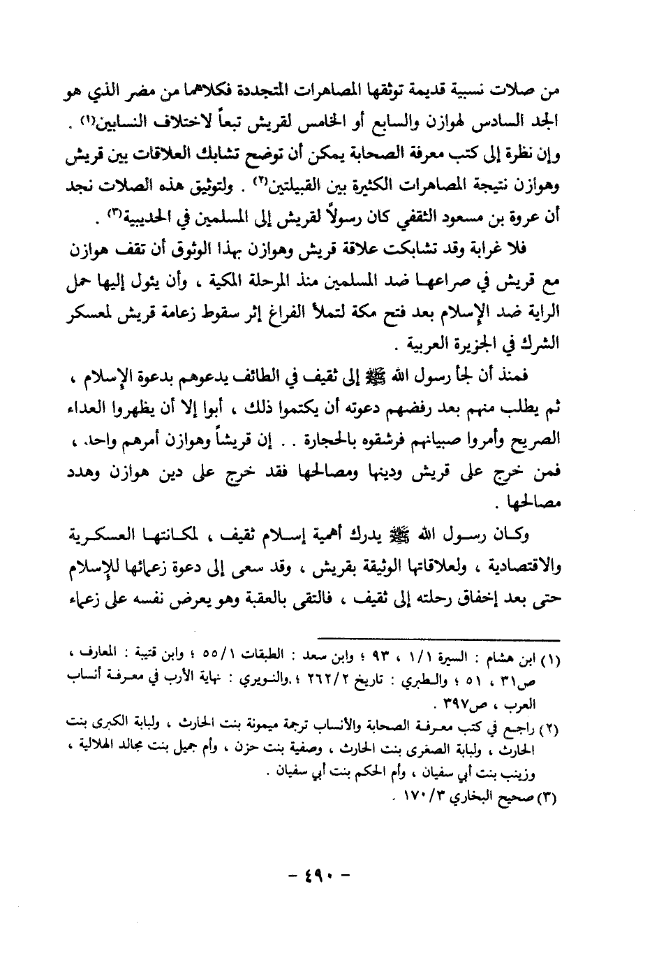 وإن نظرة إلى كتب معرفة الصحابة يمكن أن توضح تشابك العلاقات بين قريش وهوازن نتيجة المصاهرات الكثيرة بين القبيلتين (¬2). ولتوثيق هذه الصلات نجد أن عروة بن مسعود الثقفي كان رسولا لقريش إلى المسلمين في الحديبية (¬3).