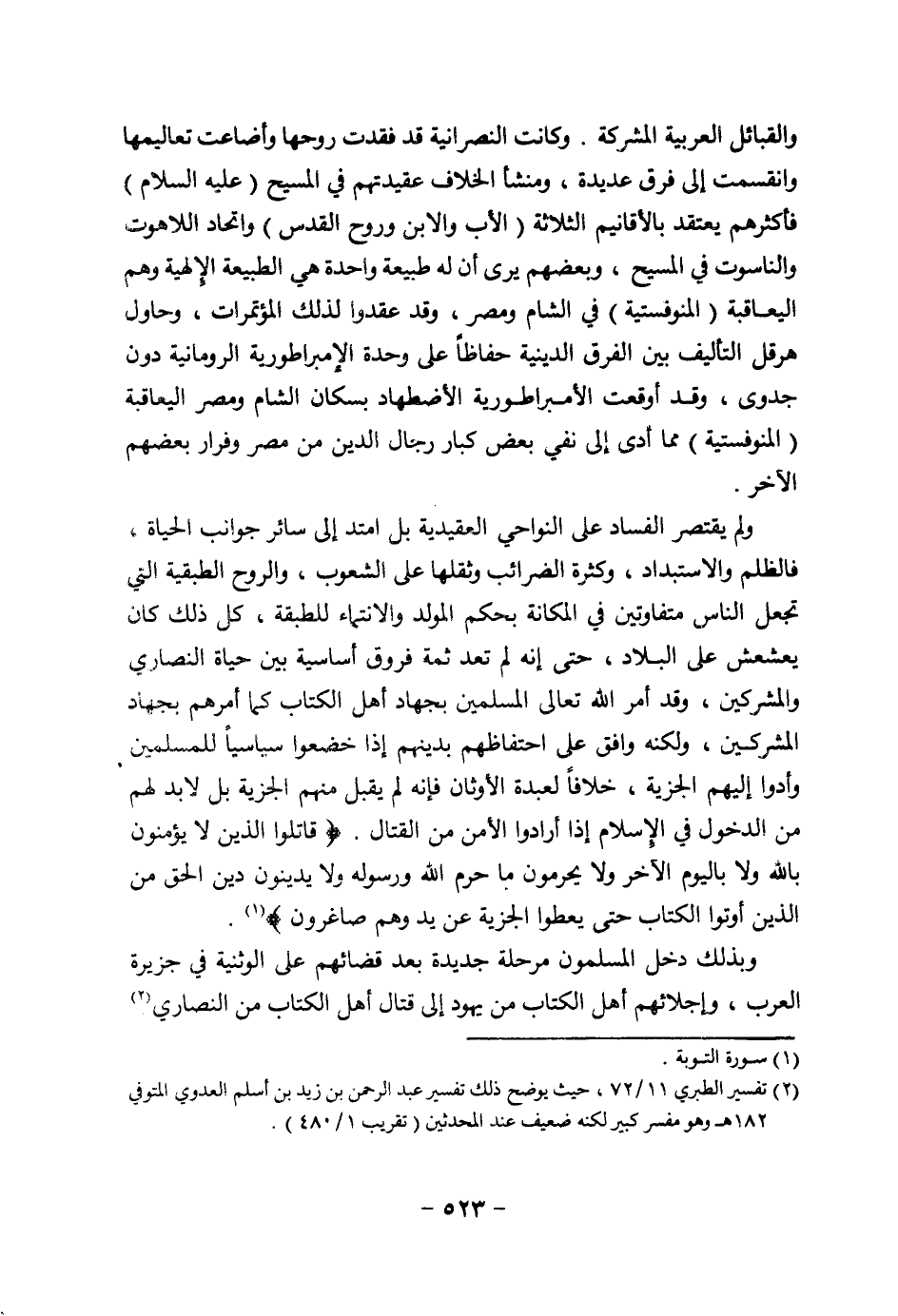 (¬2) تفسير الطبري 11/ 72، حيث يوضح ذلك تفسير عبد الرحمن بن زيد بن أسلم العدوي المتوفي 182 هـ وهو مفسر كبير لكنه ضعيف عند المحدثين (تقريب 1/ 480).