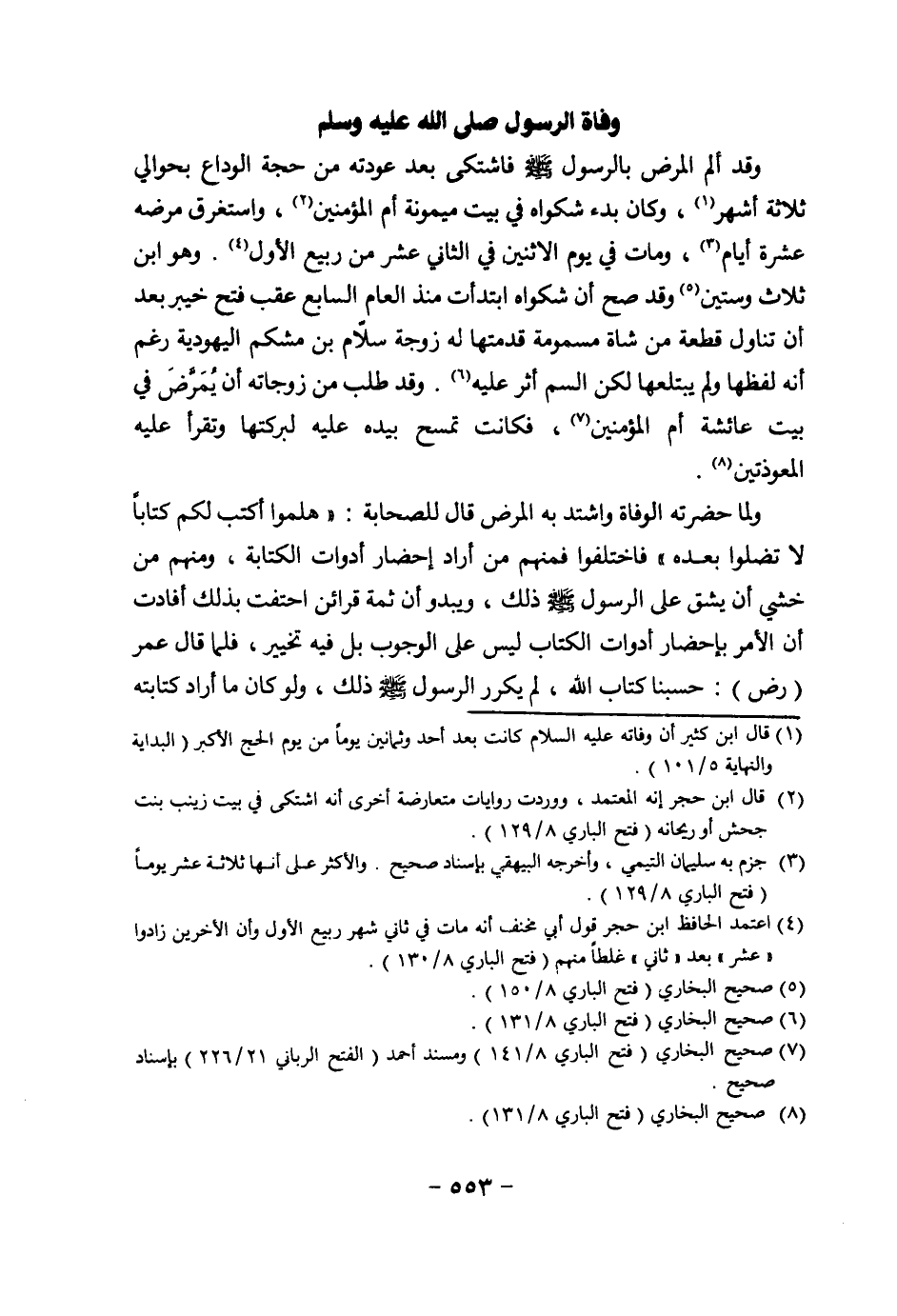 (¬1) قال ابن كثير أن وفاته عليه السلام كانت بعد أحد وثمانين يوماً من يوم الحج الأكبر (البداية والنهاية 5/ 101).