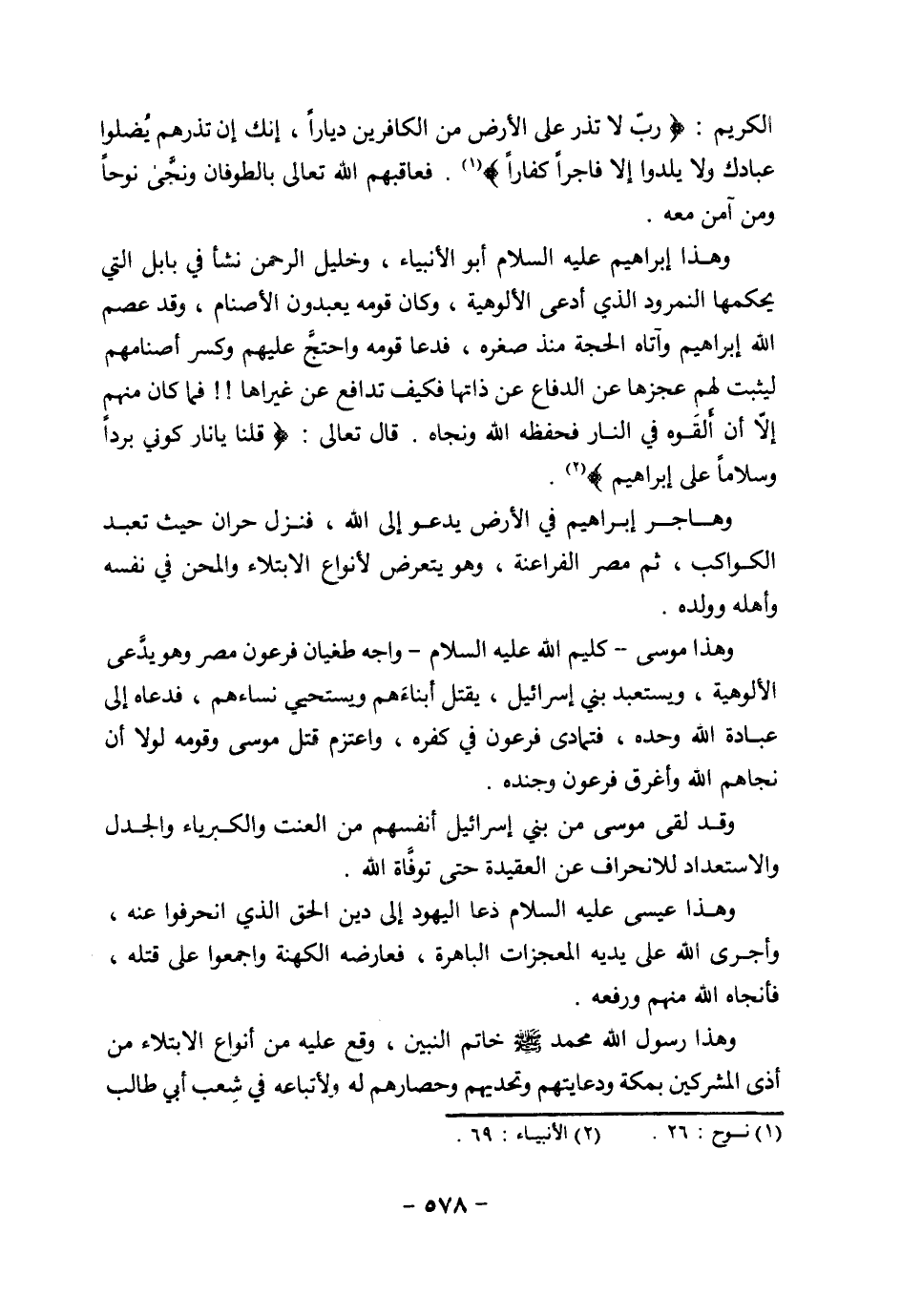 وهذا إبراهيم عليه السلام أبو الأنبياء، وخليل الرحمن نشأ في بابل التي يحكمها النمرود الذي أدعى الألوهية، وكان قومه يعبدون الأصنام، وقد عصم الله إبراهيم وآتاه الحجة منذ صغره، فدعا قومه واحتج عليهم وكسر أصنامهم ليثبت لهم عجزها عن الدفاع عن ذاتها فكيف تدافع عن غيرها!! فما كان منهم إلا أن ألقوه في النار فحفظه الله ونجاه. قال تعالى: {قُلْنَا يَا نَارُ كُونِي بَرْدًا وَسَلَامًا عَلَى إِبْرَاهِيمَ} (¬2).