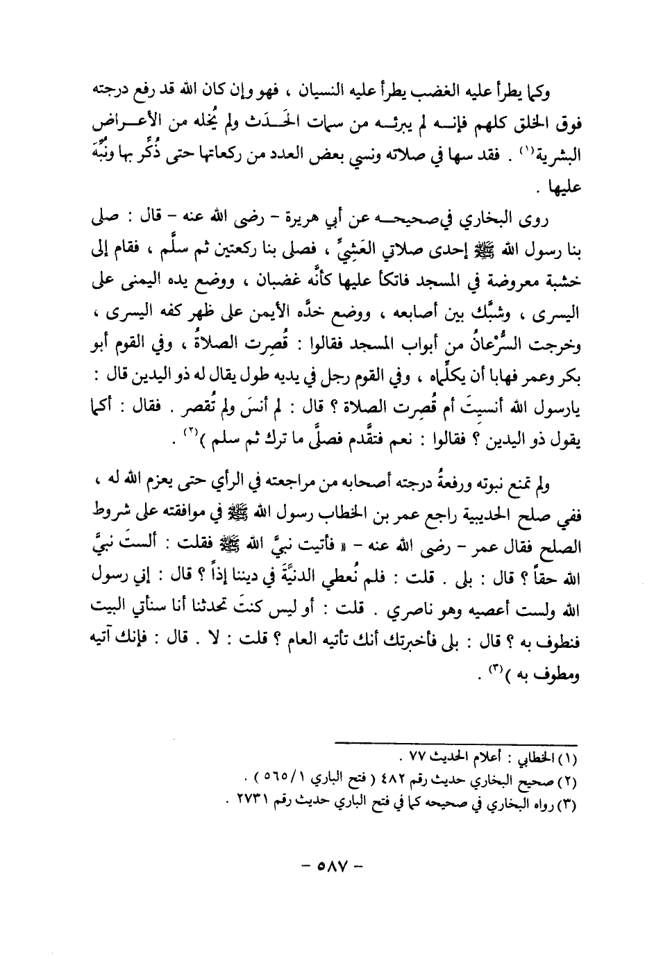 وكما يطرأ عليه الغضب يطرأ عليه النسيان، فهو وإن كان الله قد رفع درجته فوق الخلق كلهم فإنه لم يبرئه من سمات الحدث ولم يخله من الأعراض البشرية (¬1). فقد سها في صلاته ونسى بعض العدد من ركعاتها حتى ذكر بها ونبه عليها.