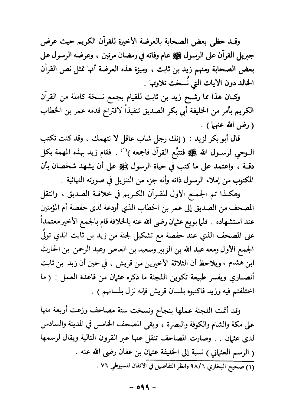 (¬1) صحيح البخاري 6/ 98 وانظر التفاصيل في الاتقان للسيوطي 76.