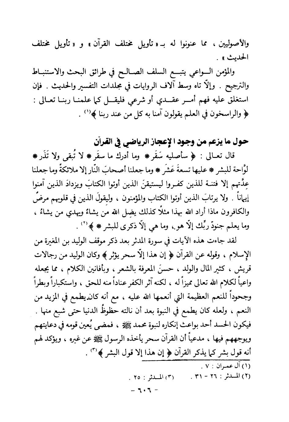 حول ما يزعم من وجود الإعجاز الرياضى فى القرآن: