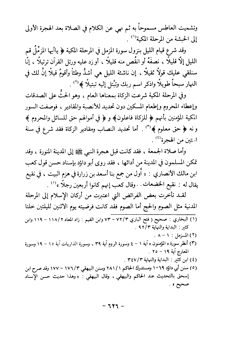 (¬1) البخاري: صحيح (فتح الباري 3/ 72 - 73 وابن القيم: زاد المعاد 2/ 118 - 119 وابن كثير: البداية والنهاية 3/ 92.
