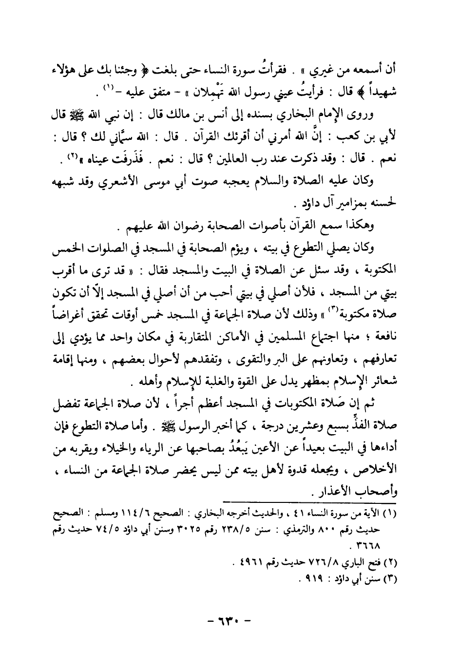 (¬1) الآية من سورة النساء 41، والحديث أخرجه البخاري: الصحيح 6/ 114 ومسلم: الصحيح حديث رقم 800 والترمذي: سنن 5/ 238 رقم 3025 وسنن أبي داؤد 5/ 74 حديث رقم 3668.