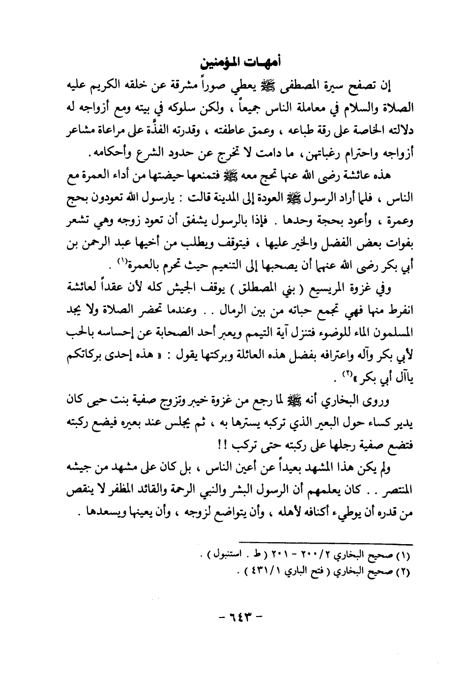 إن تصفح سيرة المصطفى صلى الله عليه وسلم يعطي صوراً مشرقة عن خلقه الكريم عليه الصلاة والسلام في معاملة الناس جميعاً، ولكن سلوكه في بيته ومع أزواجه له دلالته الخاصة على رقة طباعه، وعمق عاطفته، وقدرته الفذَّة على مراعاة مشاعر أزواجه واحترام رغباتهن، ما دامت لا تخرج عن حدود الشرع وأحكامه.