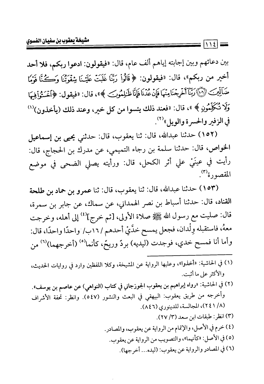 كتاب مشيخة يعقوب بن سفيان الفسوي