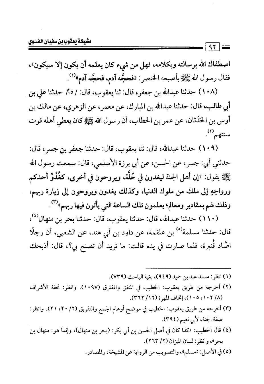 كتاب مشيخة يعقوب بن سفيان الفسوي