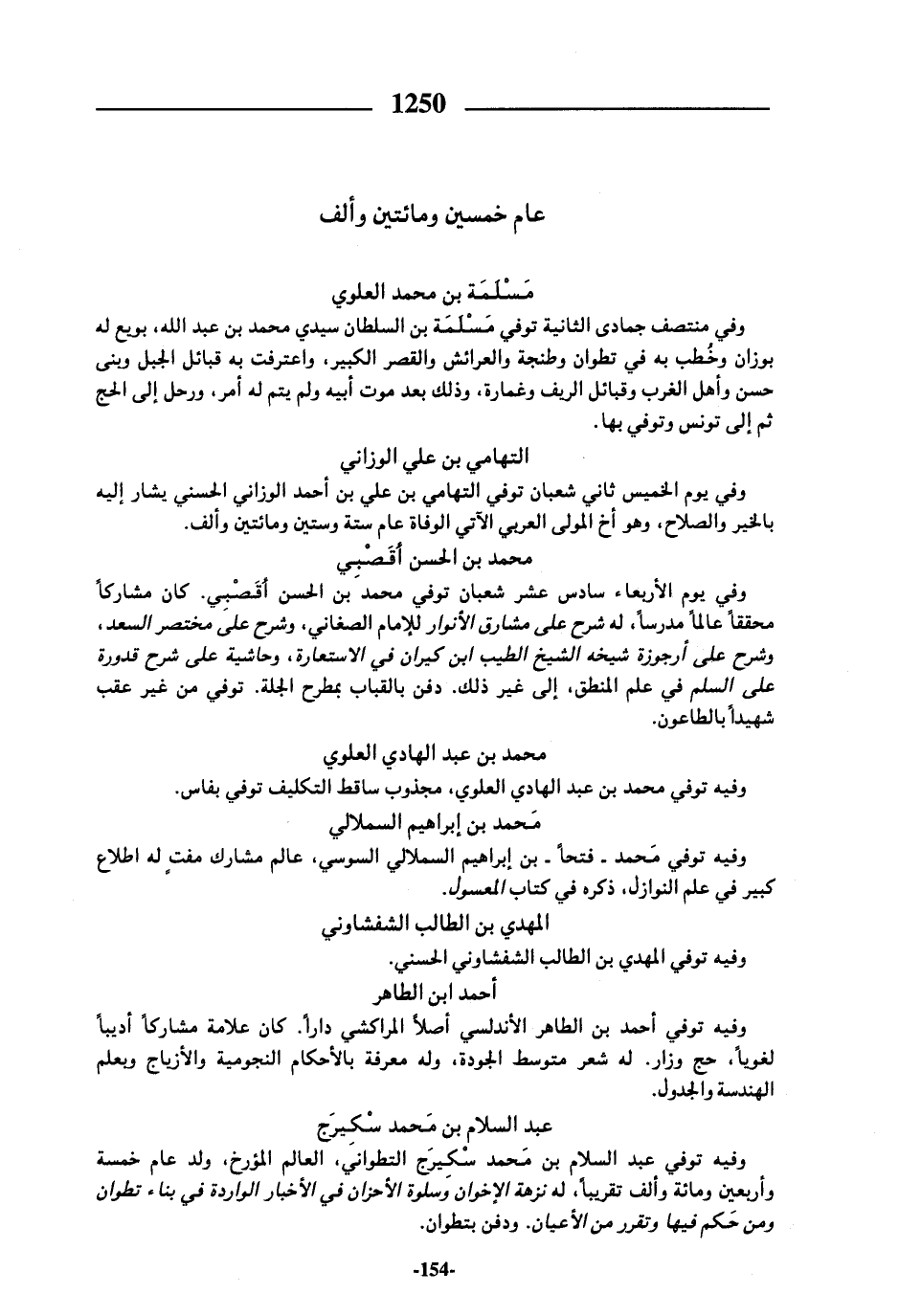 وفيه توفي محمد بن عبد الهادي العلوي، مجذوب ساقط التكليف توفي بفاس.