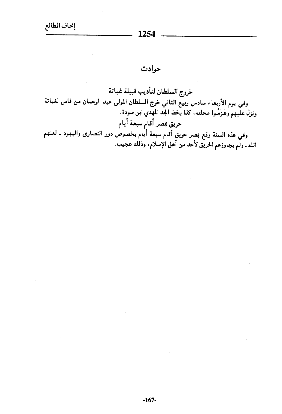 وفي يوم الأربعاء سادس ربيع الثاني خرج السلطان المولى عبد الرحمان من فاس لغياتة ونزل عليهم وهزموا محلته، كذا بخط الجد المهدي ابن سودة.