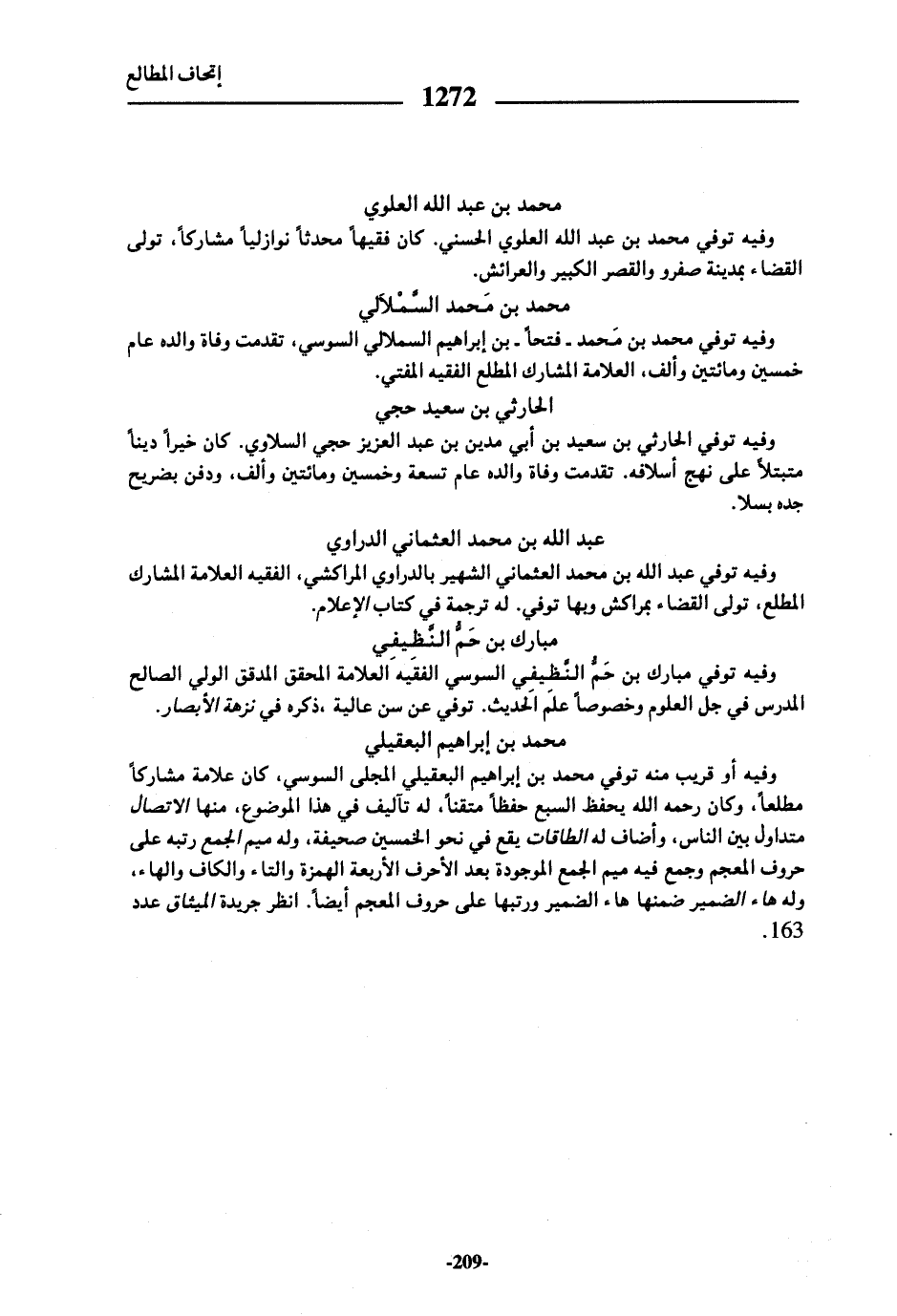 وفيه توفي محمد بن محمد-فتحا-بن إبراهيم السملالي السوسي، تقدمت وفاة والده عام خمسين ومائتين وألف، العلامة المشارك المطلع الفقيه المفتي.