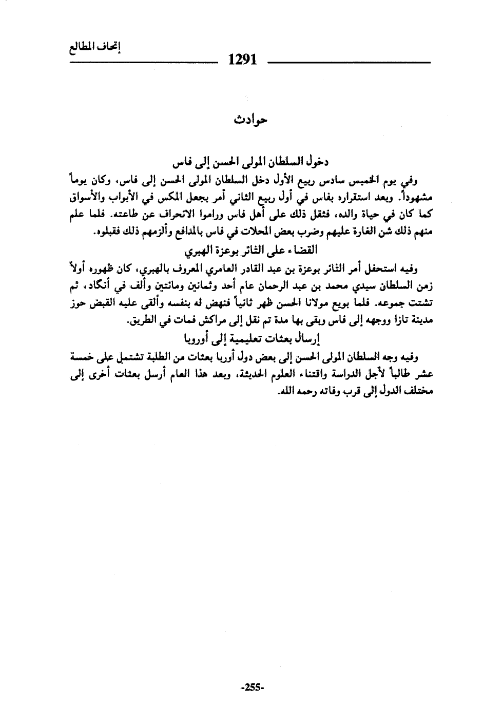 وفيه وجه السلطان المولى الحسن إلى بعض دول أوربا بعثات من الطلبة تشتمل على خمسة عشر طالبا لأجل الدراسة واقتناء العلوم الحديثة، وبعد هذا العام أرسل بعثات أخرى إلى مختلف الدول إلى قرب وفاته رحمه الله.