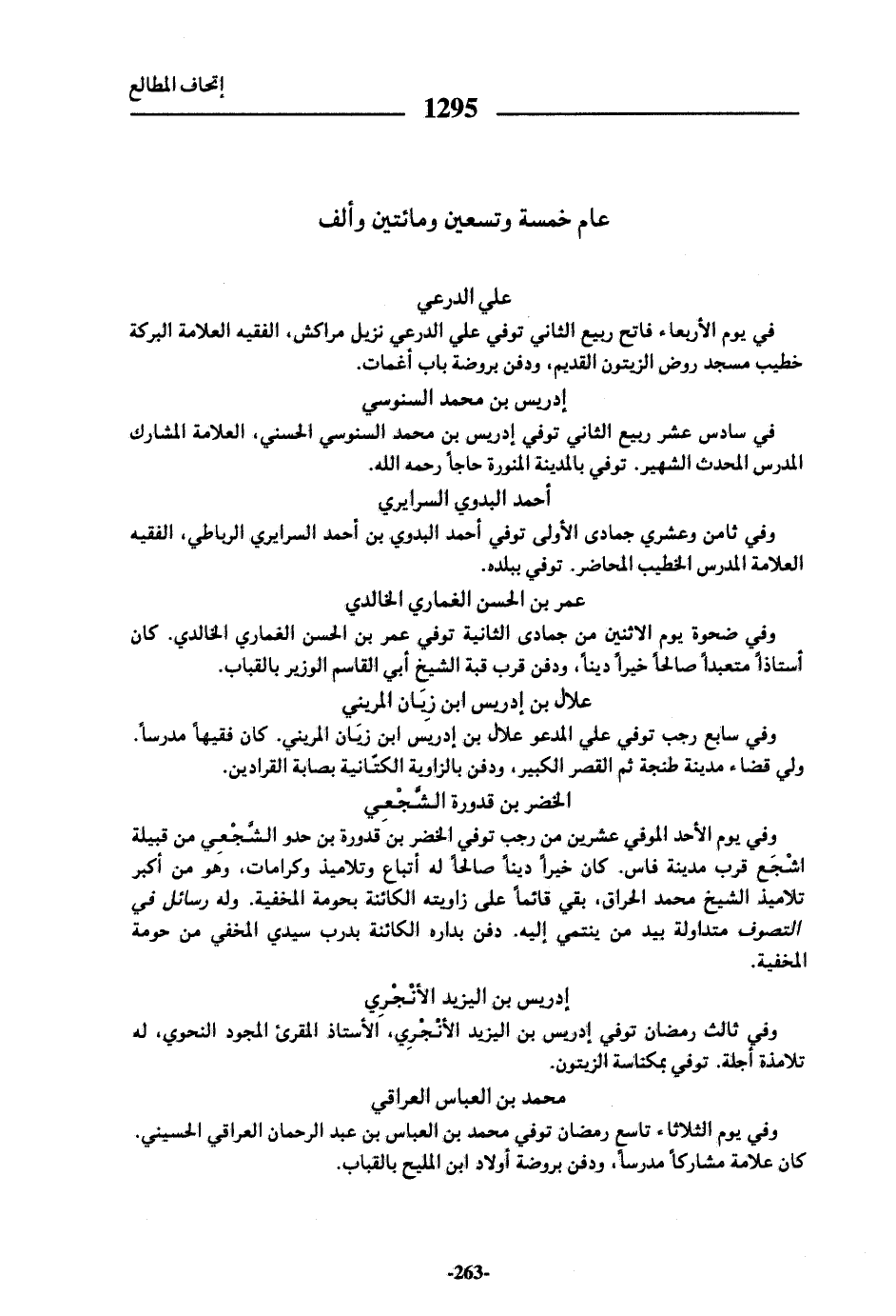وفي سابع رجب توفي علي المدعو علال بن إدريس ابن زيان المريني. كان فقيها مدرسا.