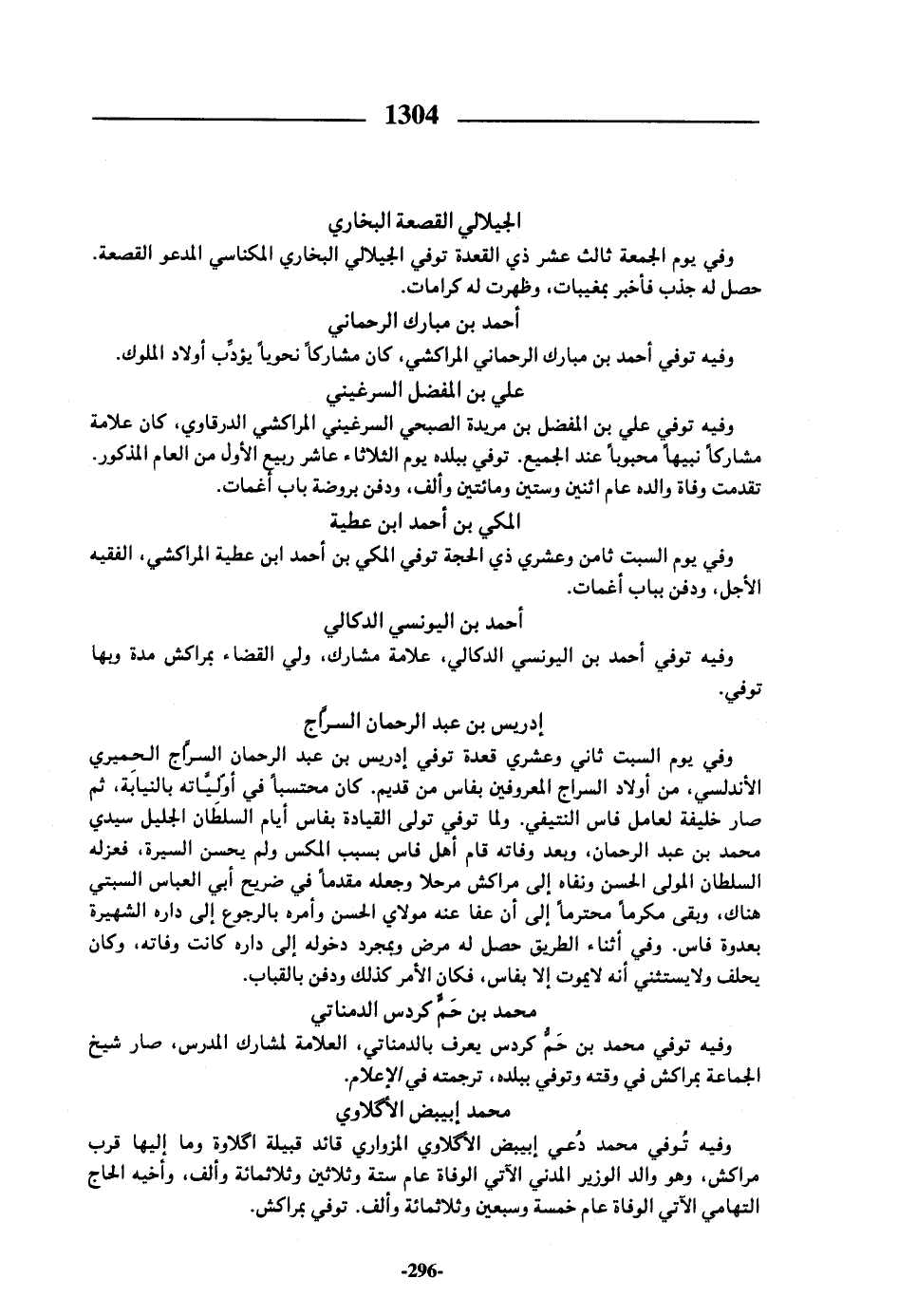 وفيه توفي محمد بن حمّ كردس يعرف بالدمناتي، العلامة لمشارك المدرس، صار شيخ الجماعة بمراكش في وقته وتوفي ببلده، ترجمته في الإعلام.