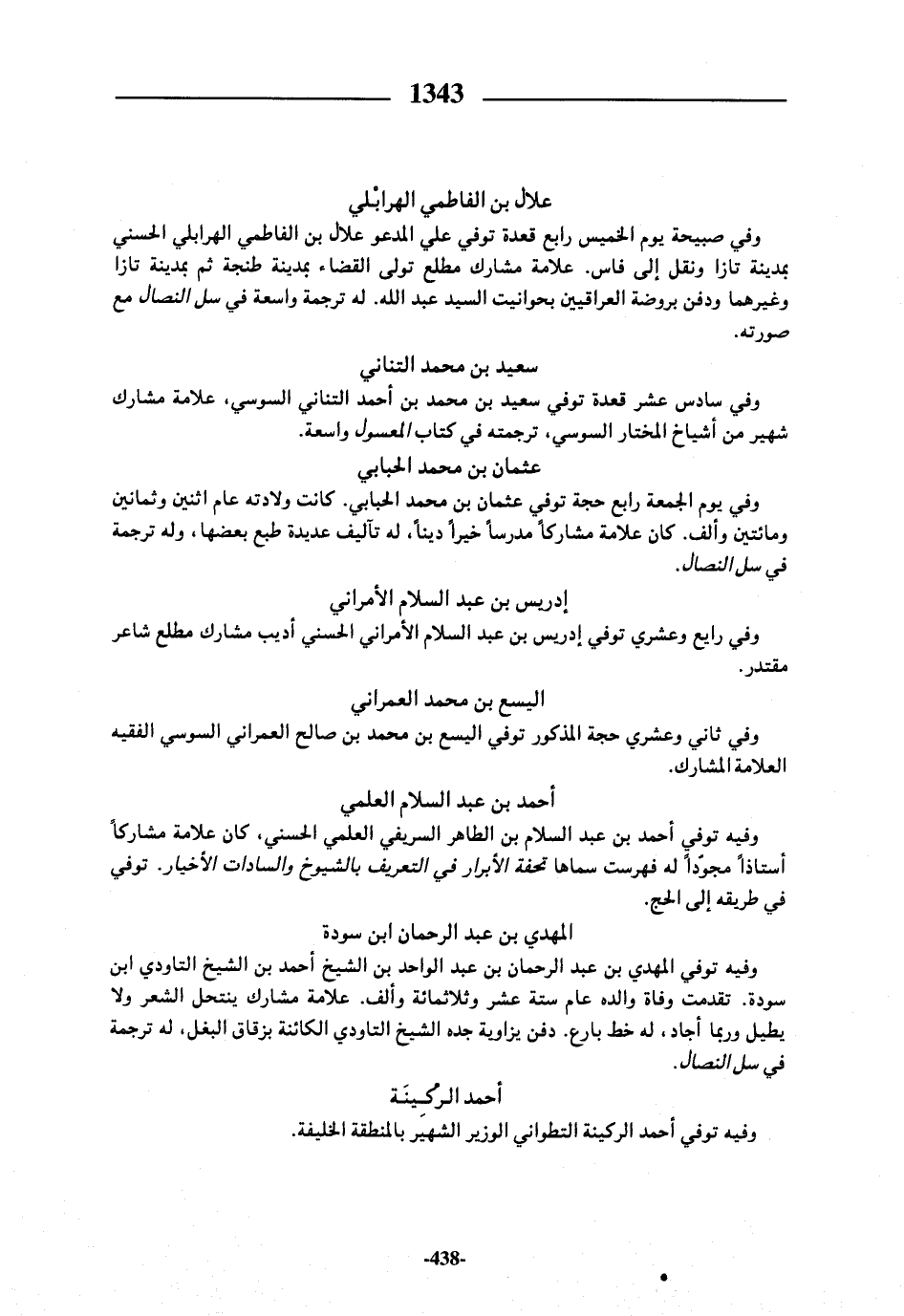 وفي رايع وعشري توفي إدريس بن عبد السلام الأمراني الحسني أديب مشارك مطلع شاعر مقتدر.