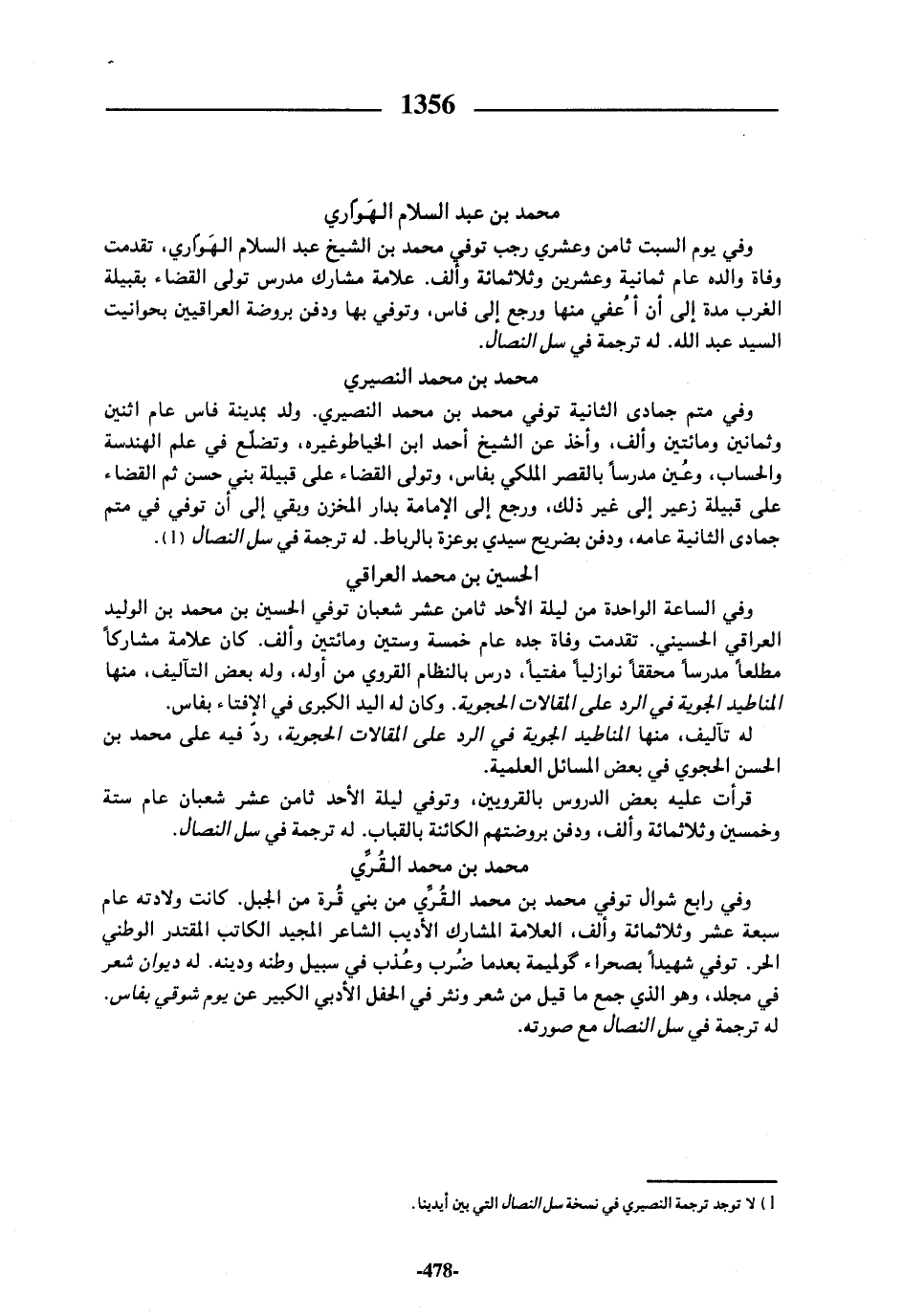 (¬1) لا توجد ترجمة النصيري في نسخة سل النصال التي بين أيدينا.