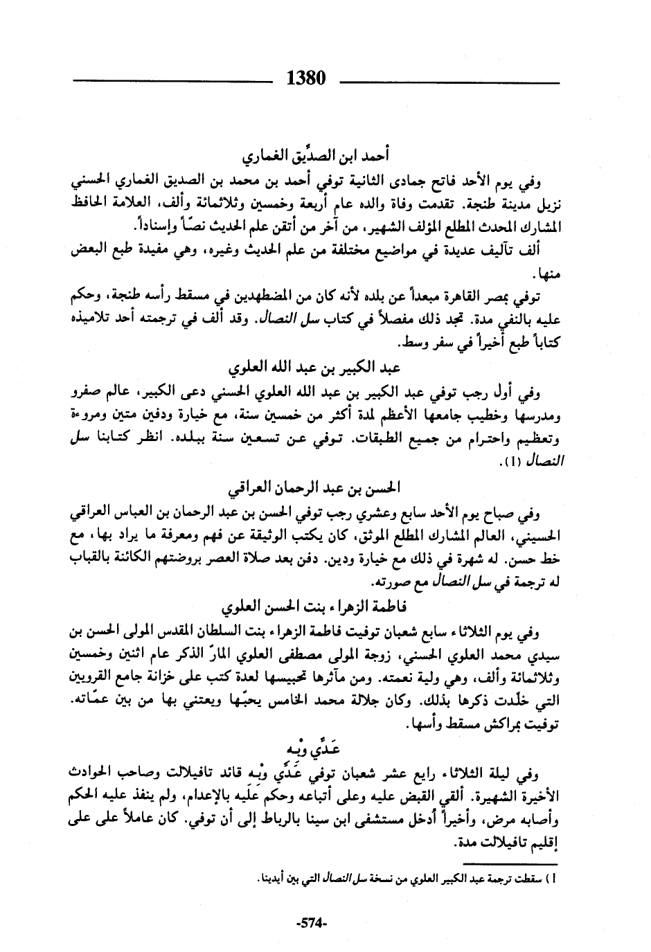 (¬1) سقطت ترجمة عبد الكبير العلوي من نسخة سل النصال التي بين أيدينا.