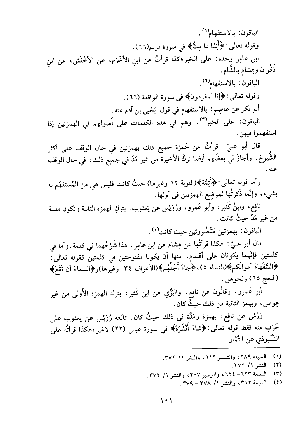 (4) السبعة 312، والنشر 1/ 378 - 379.
