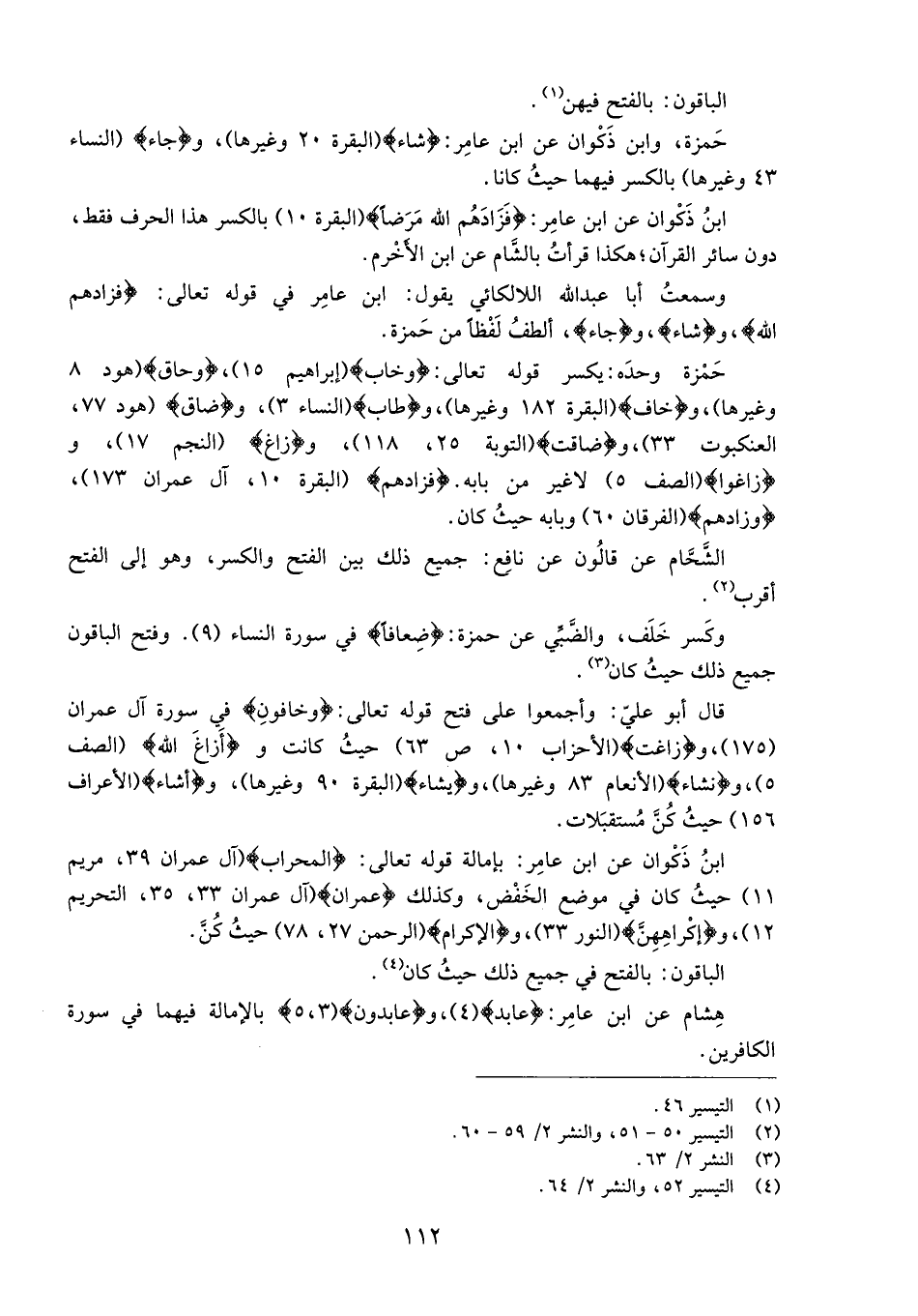 (2) التيسير 50 - 51، والنشر 2/ 59 - 60.