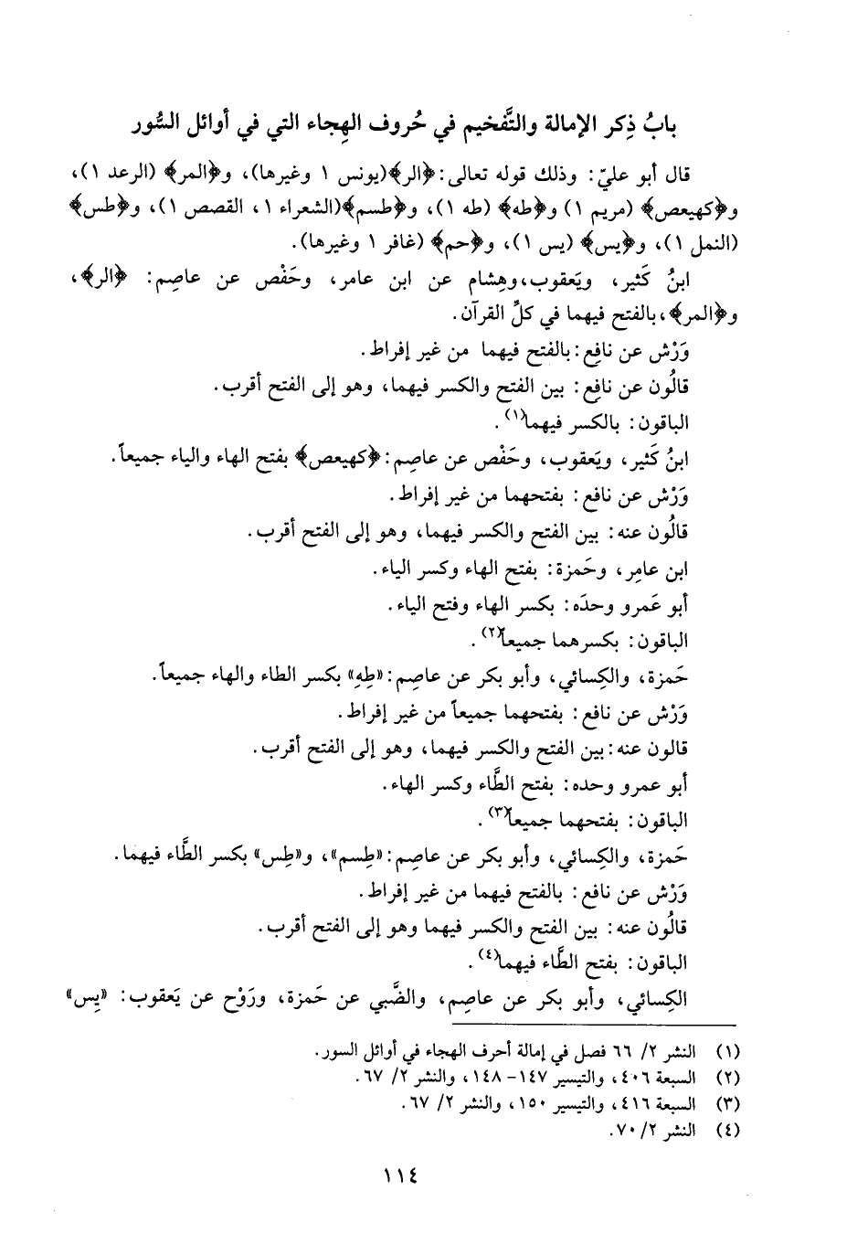 (1) النشر 2/ 66 فصل في إمالة أحرف الهجاء في أوائل السور.