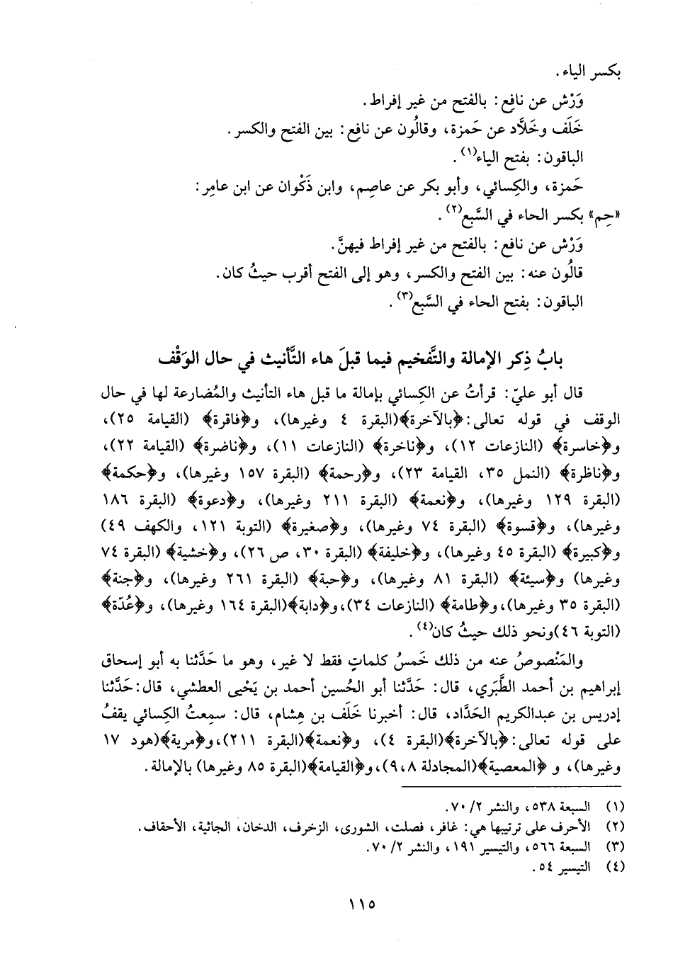 باب ذكر الإمالة والتّفخيم فيما قبل هاء التّأنيث في حال الوقف