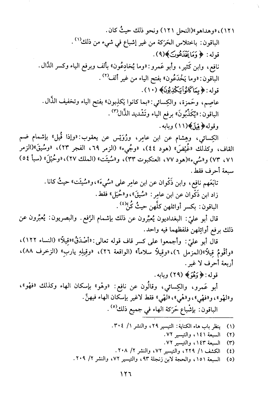 (5) السبعة 151، والحجة لابن زنجلة 93، والتيسير 72، والنشر 2/ 209.