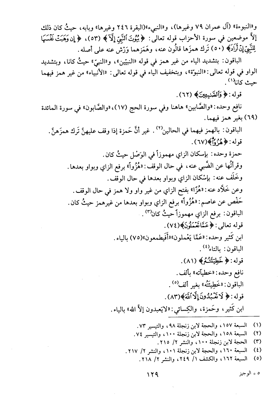 كتاب الوجيز في شرح قراءات القرأة الثمانية أئمة الأمصار الخمسة
