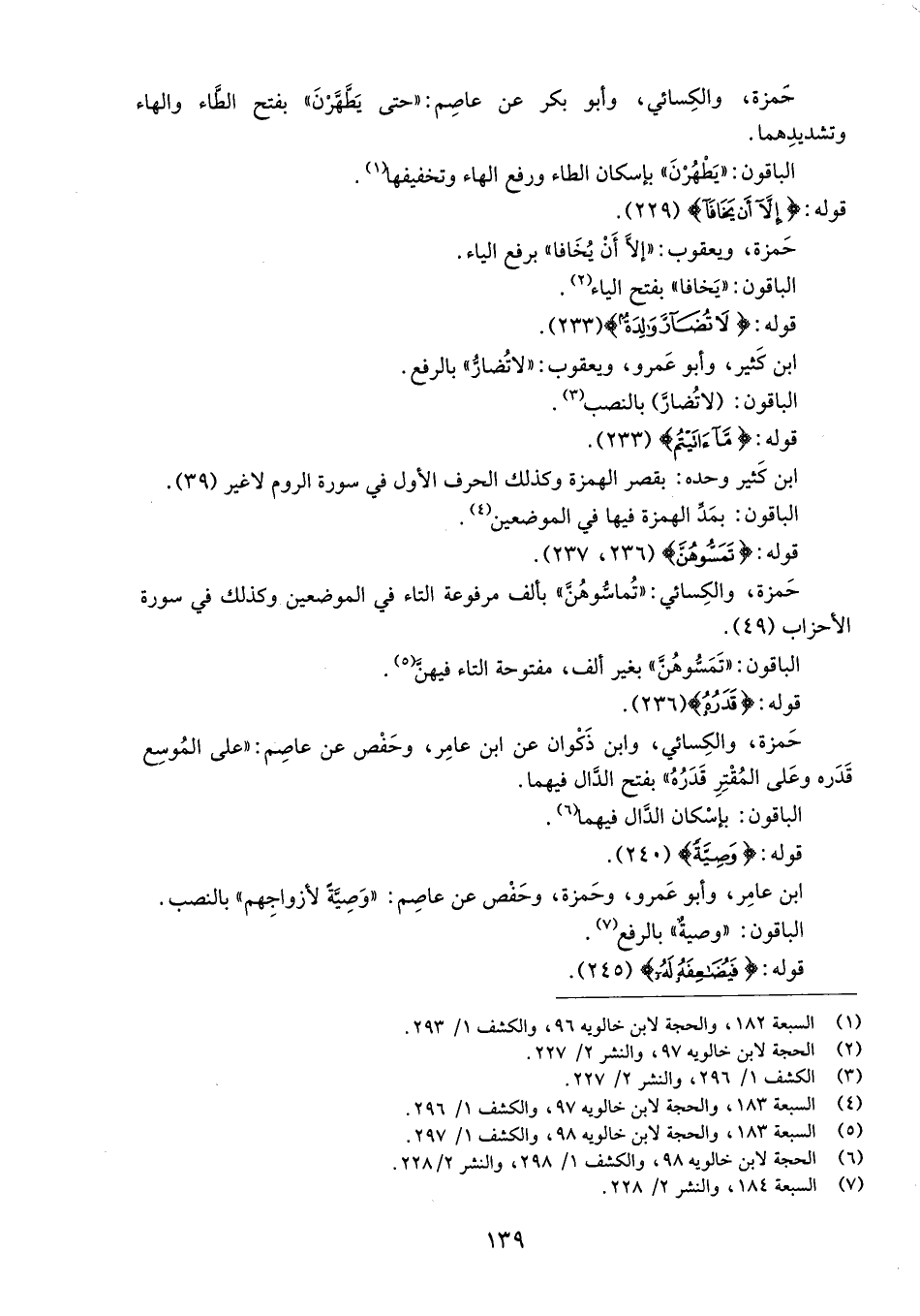 (1) السبعة 182، والحجة لابن خالويه 96، والكشف 1/ 293.