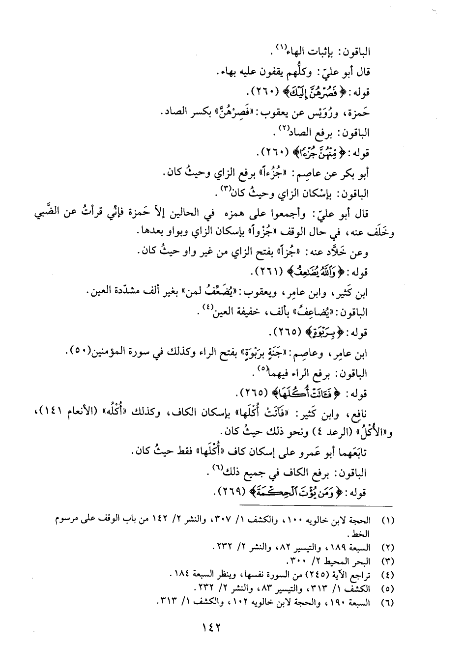 (1) الحجة لابن خالويه 100، والكشف 1/ 307، والنشر 2/ 142، من باب الوقف على مرسوم الخط.