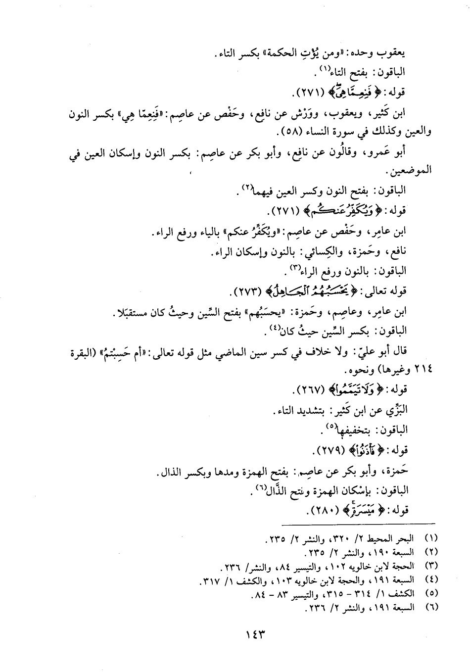 (1) البحر المحيط 2/ 320، والنشر 2/ 235.