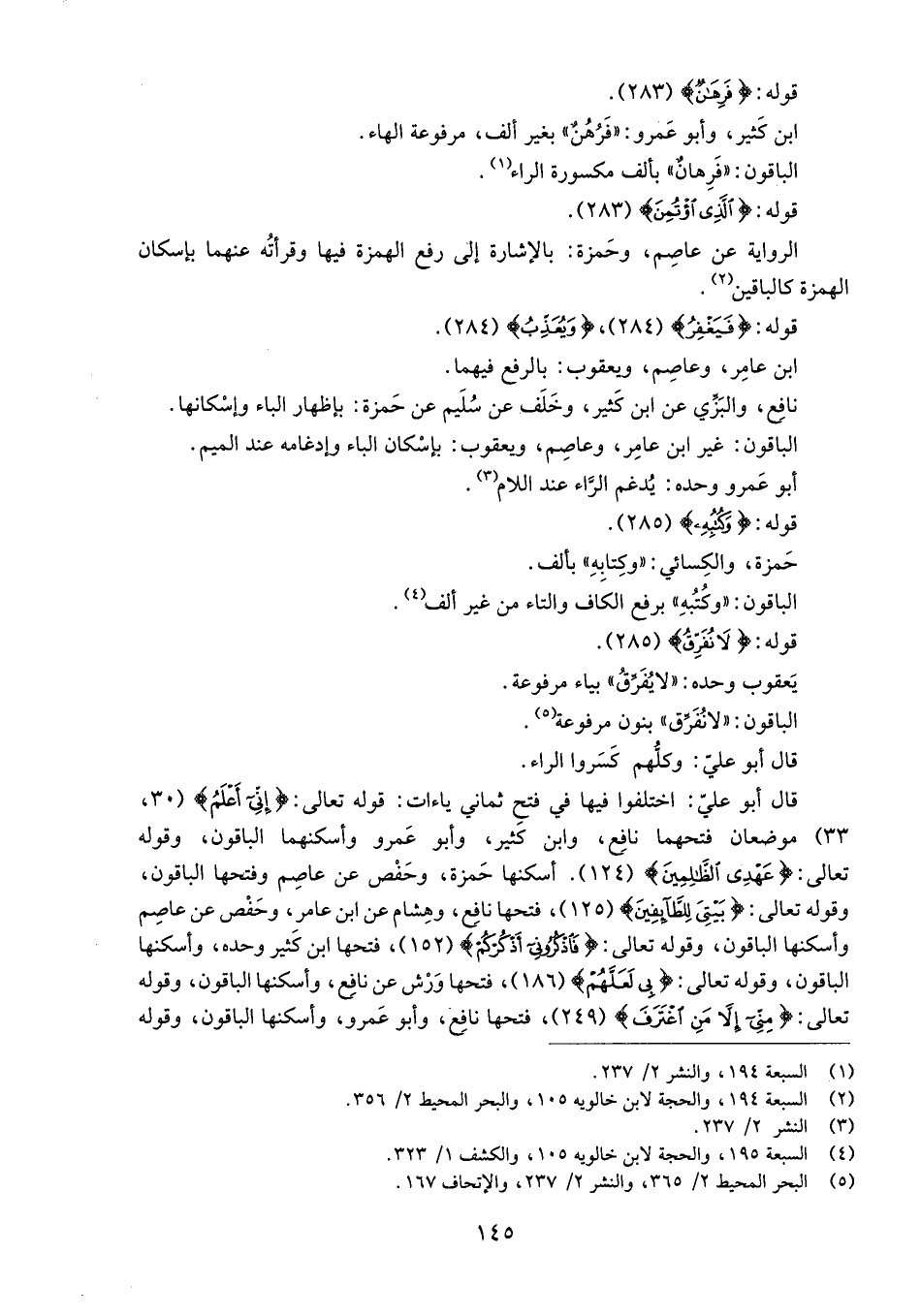 (5) البحر المحيط 2/ 365، والنشر 2/ 237، والإتحاف 167.