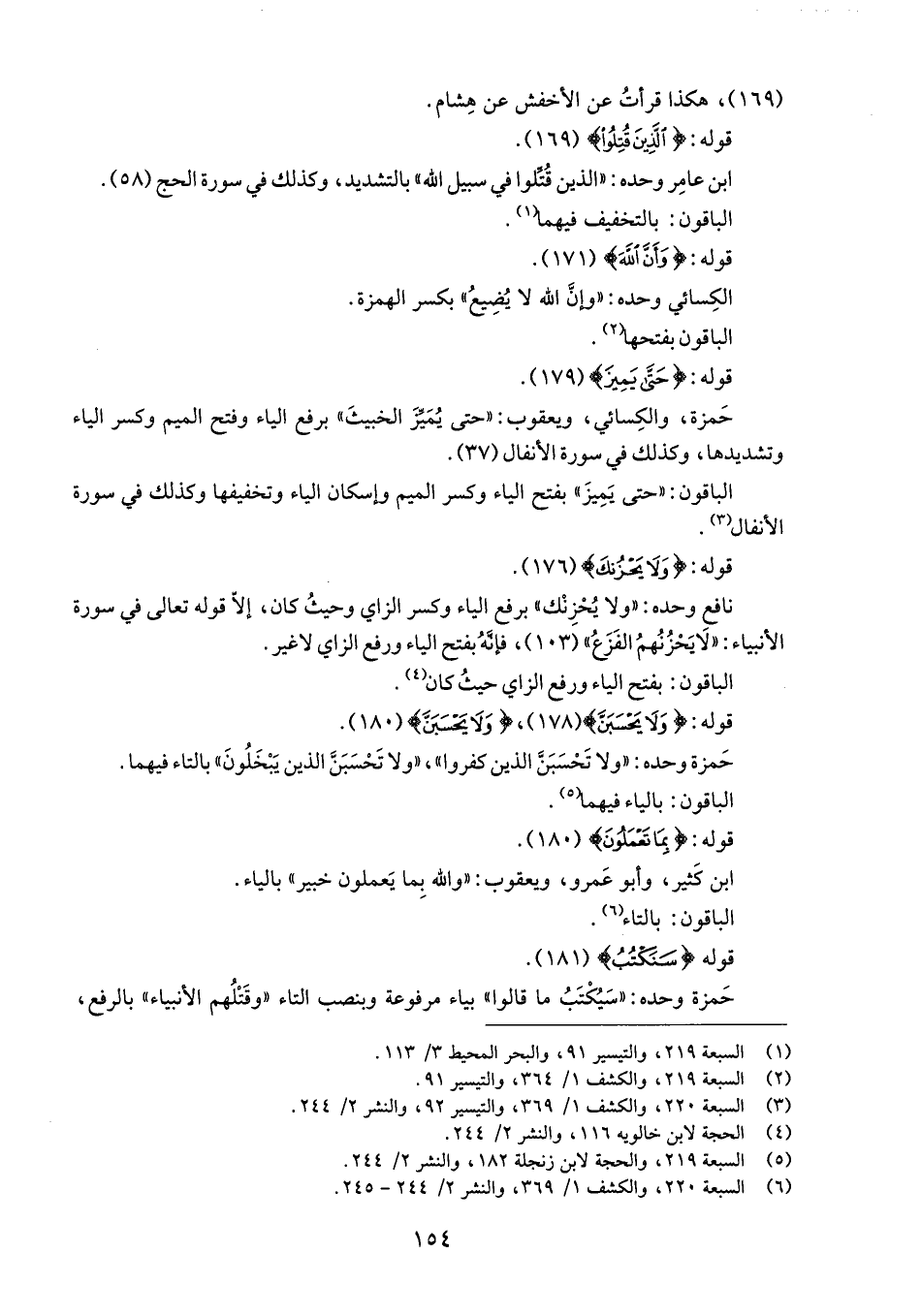 (169)، هكذا قرأت عن الأخفش عن هشام.