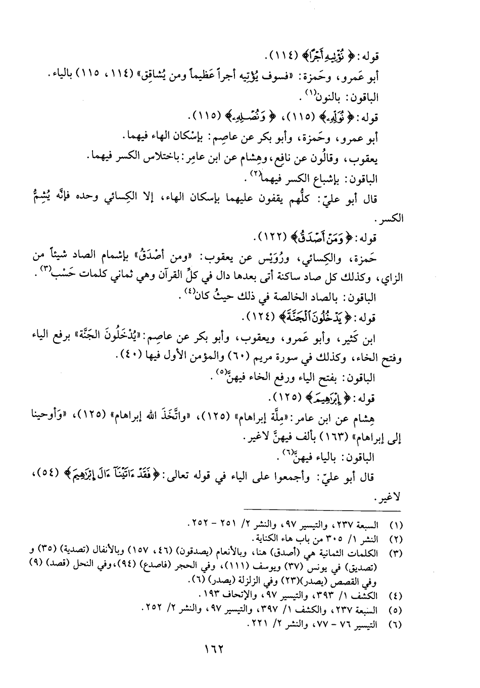 قال أبو عليّ: وأجمعوا على الياء في قوله تعالى: فَقَدْ آتَيْنا آلَ إِبْراهِيمَ (54)، لا غير.