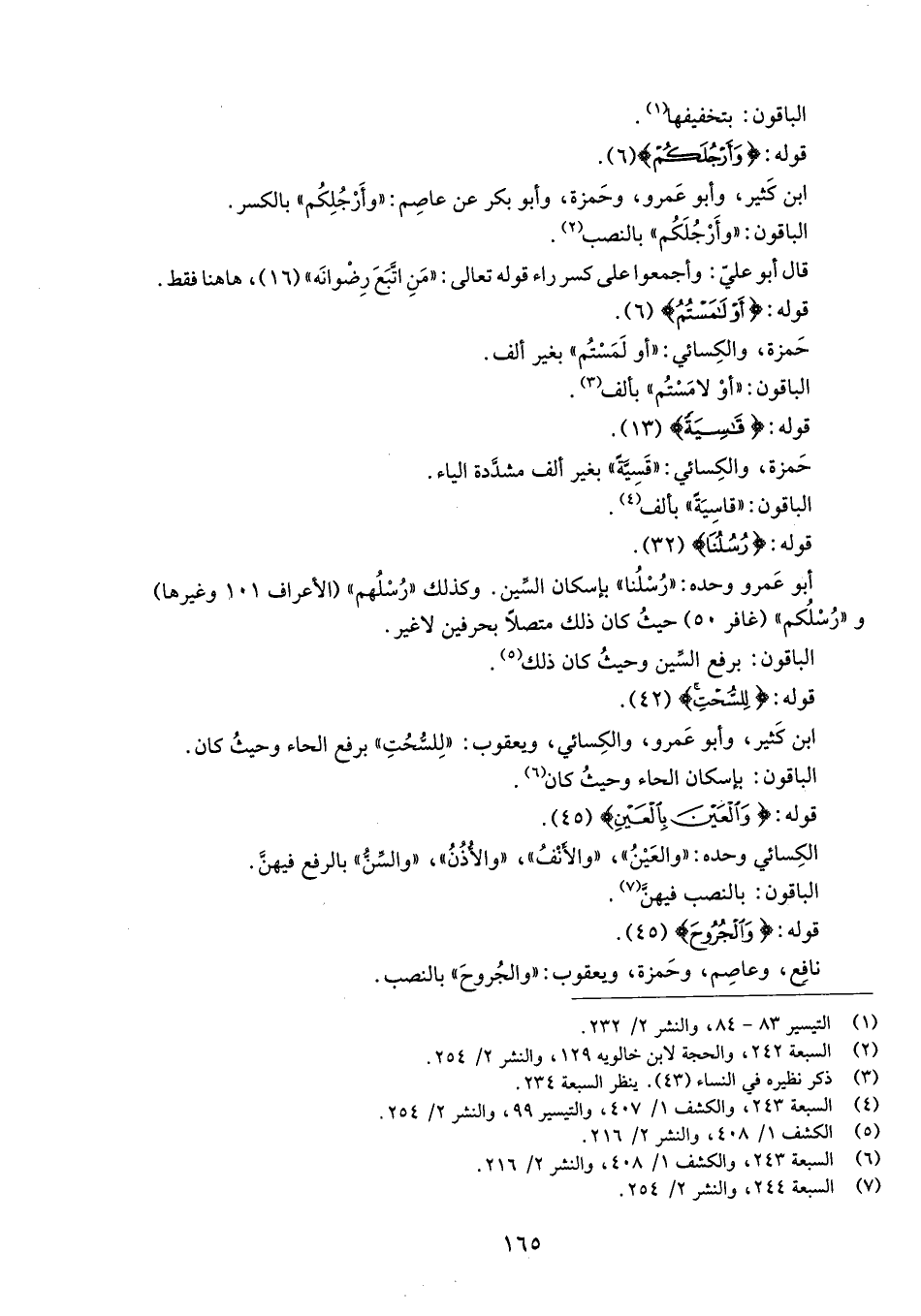 (2) السبعة 242، والحجة لابن خالويه 129، والنشر 2/ 254.