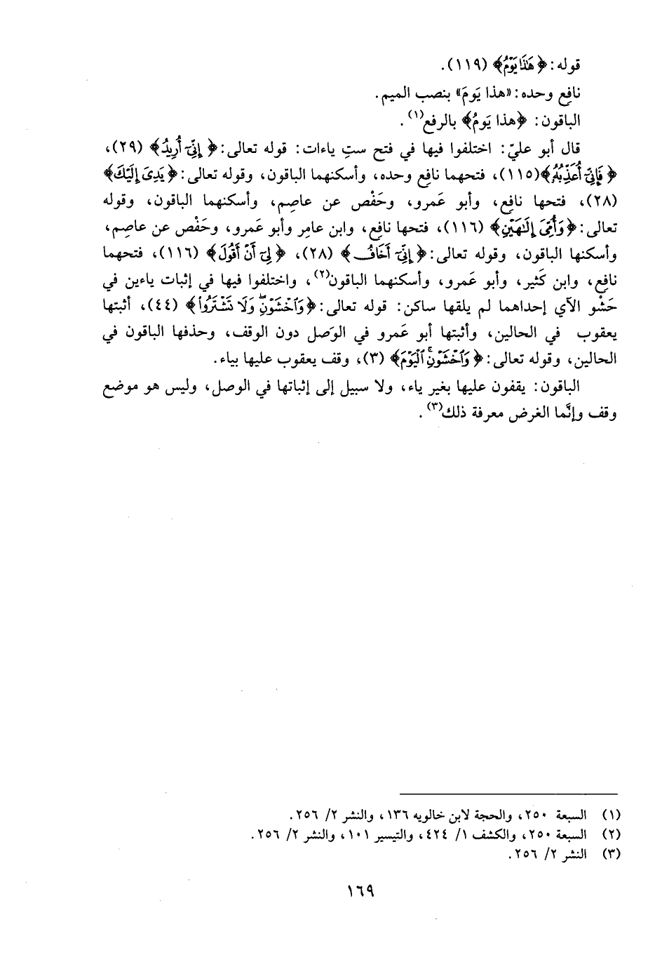 (1) السبعة 250، والحجة لابن خالويه 136، والنشر 2/ 256.