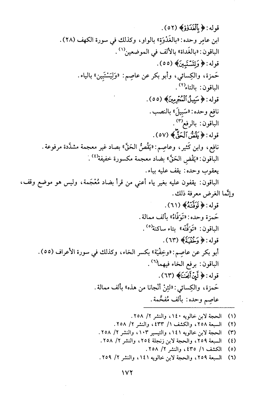 (6) السبعة 259، والحجة لابن خالويه 141، والنشر 2/ 259.