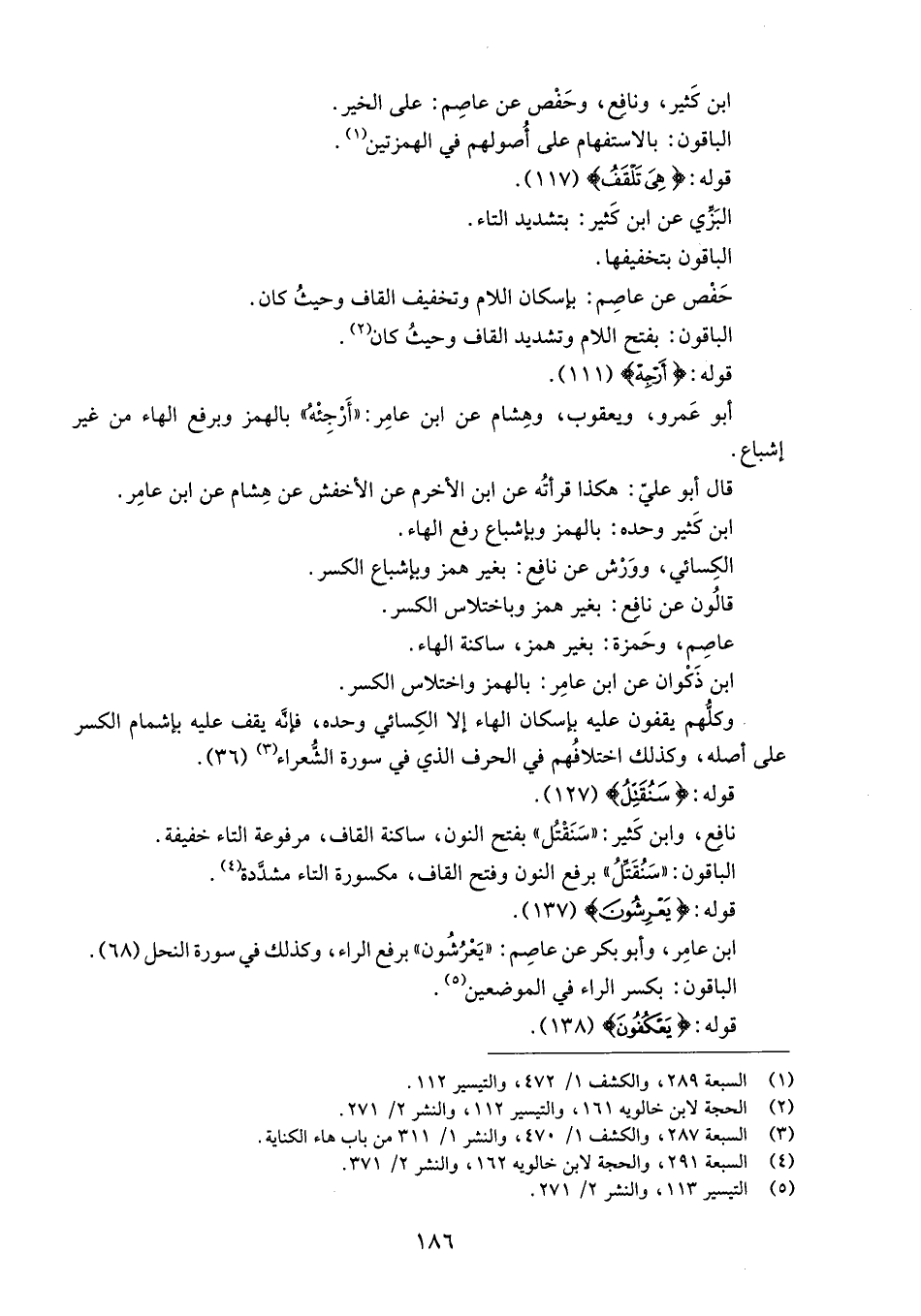 (1) السبعة 289، والكشف 1/ 472، والتيسير 112.