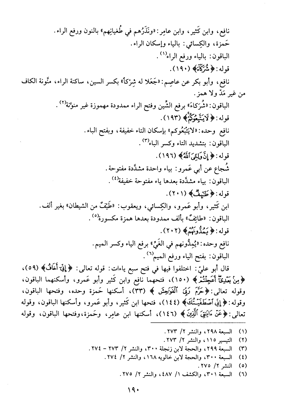 (6) السبعة 301، والكشف 1/ 487، والنشر 2/ 275.