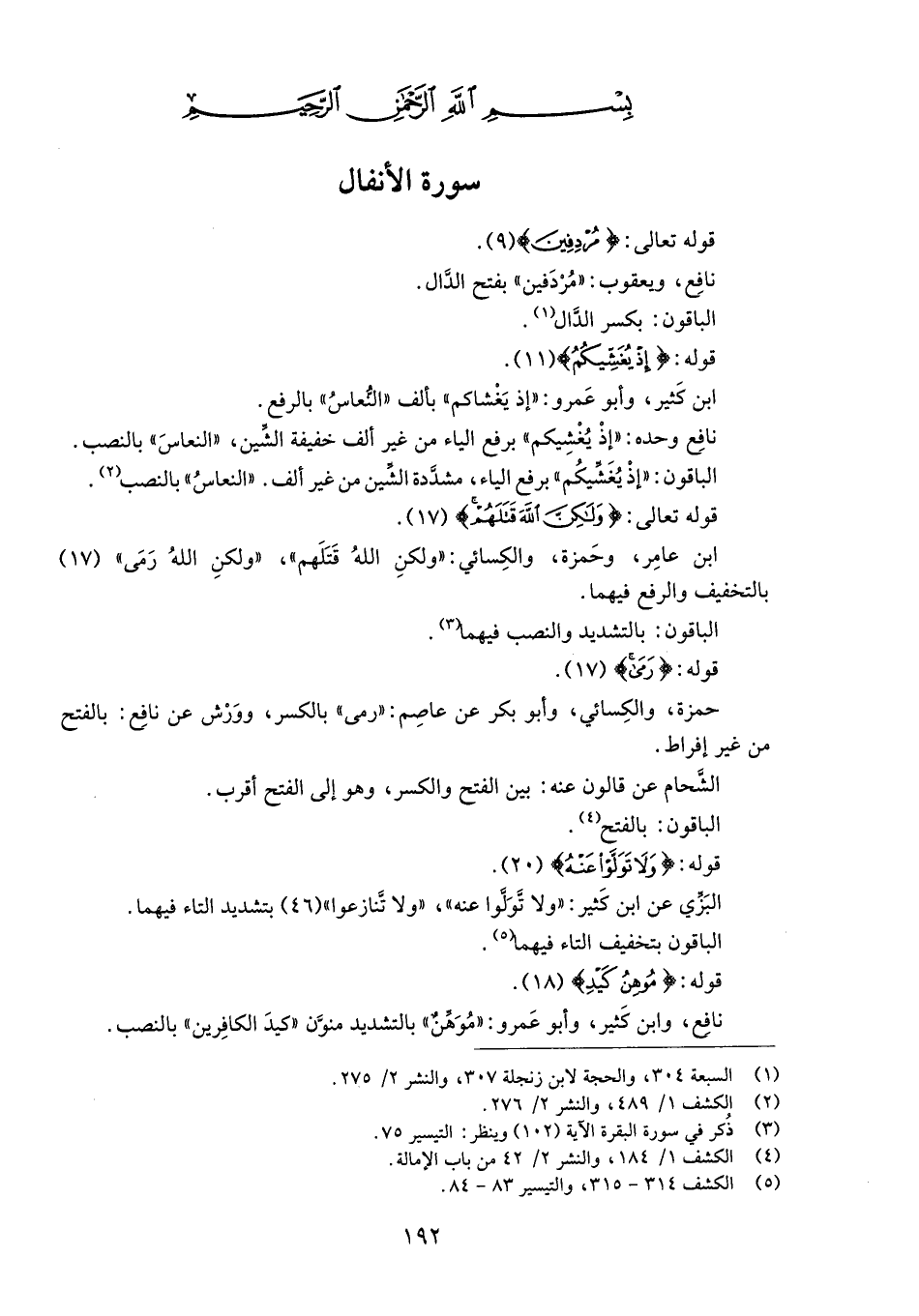 (5) الكشف 314 - 315، والتيسير 83 - 84.