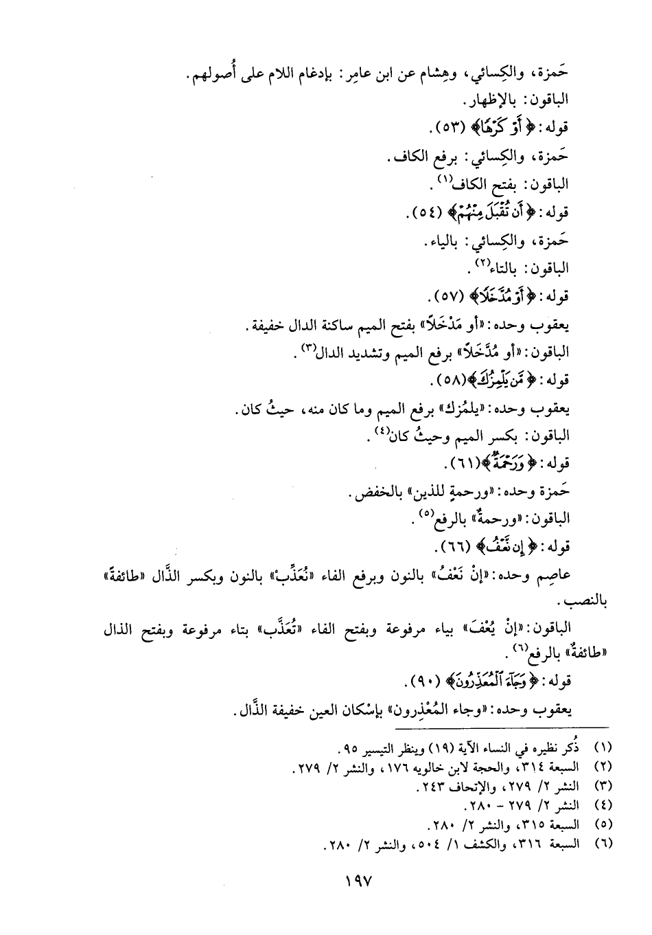 (6) السبعة 316، والكشف 1/ 504، والنشر 2/ 280.