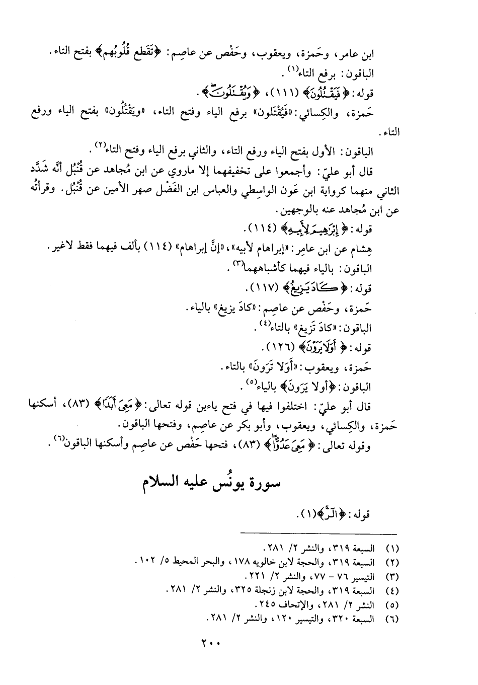 هشام عن ابن عامر: «إبراهام لأبيه»، «إنّ إبراهام» (114) بألف فيهما فقط لا غير.