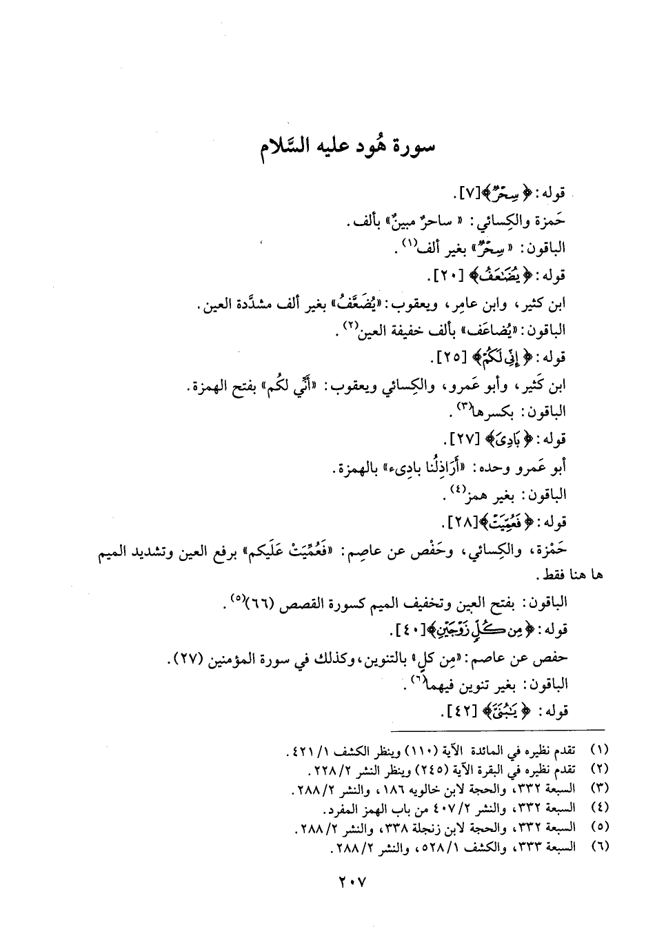 (6) السبعة 333، والكشف 1/ 528، والنشر 2/ 288.