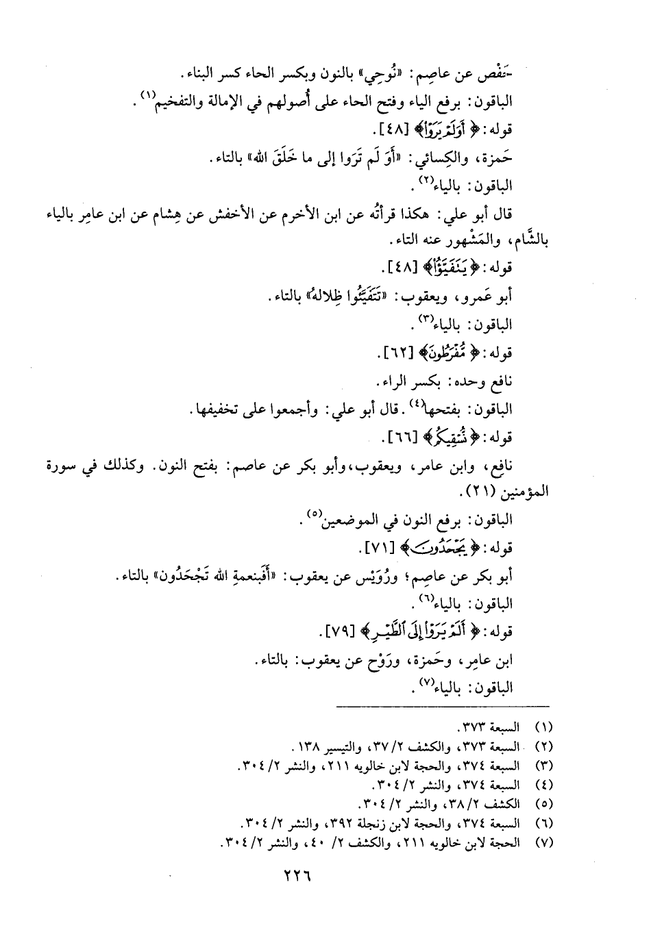 (2) السبعة 373، والكشف 2/ 37، والتيسير 138.