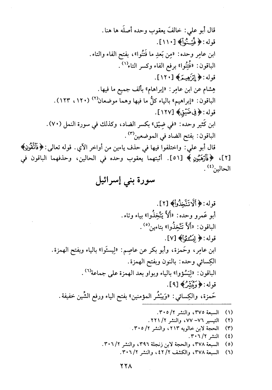 (5) السبعة 378، والحجة لابن زنجلة 396، والنشر 2/ 306.