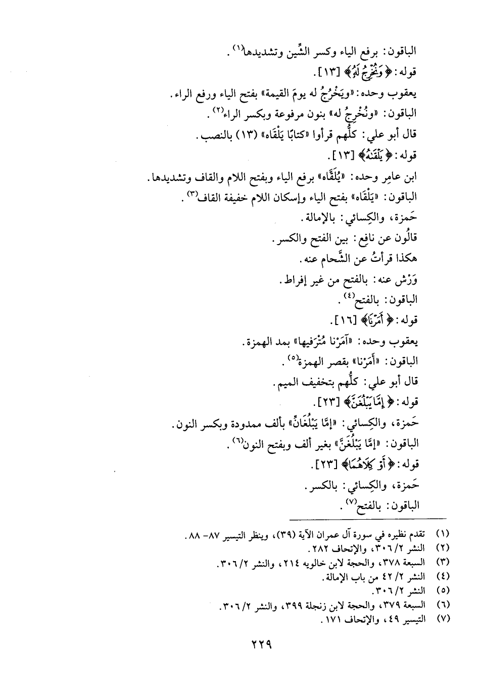 (3) السبعة 378، والحجة لابن خالويه 214، والنشر 2/ 306.