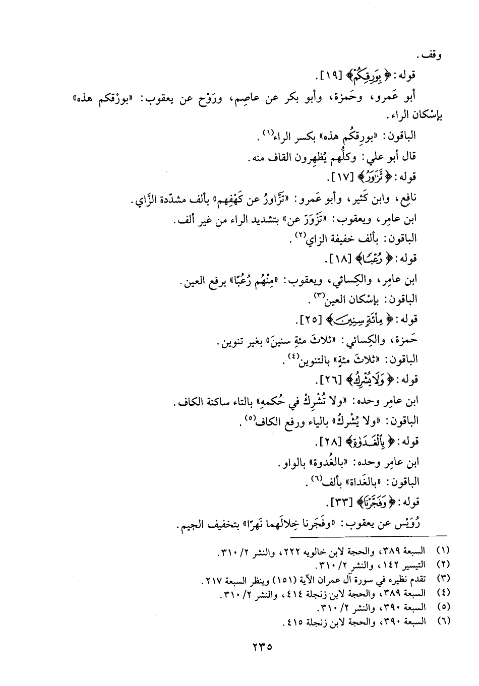 (6) السبعة 390، والحجة لابن زنجلة 415.