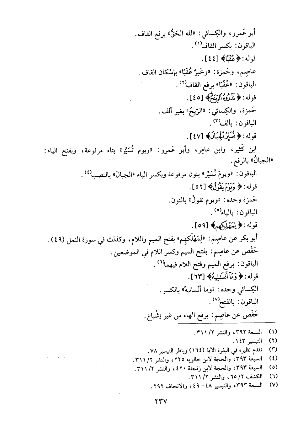(7) السبعة 393، والتيسير 48 - 49، والاتحاف 292.