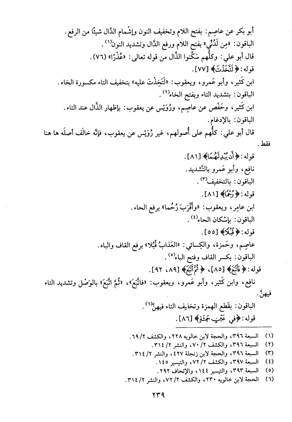 (6) الحجة لابن خالويه 230، والكشف 2/ 72، والنشر 2/ 314.